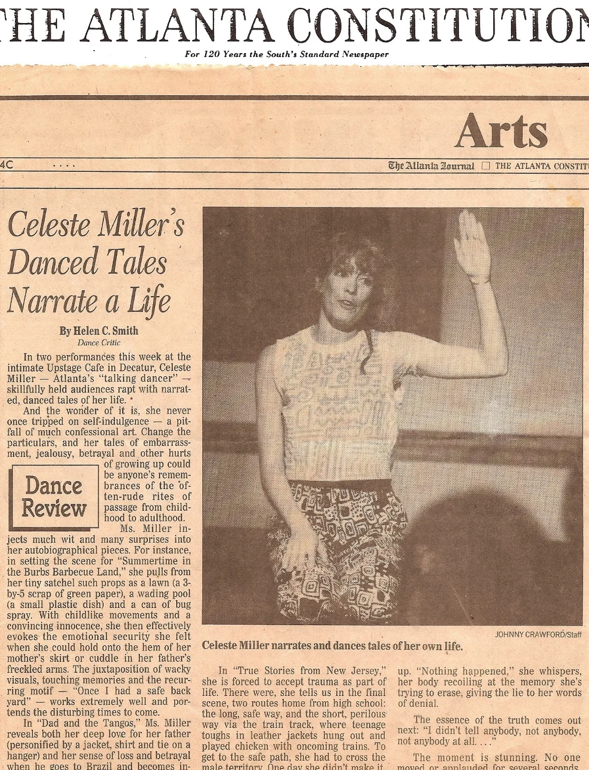 "Watching Celeste Miller's motivated dance pieces, you get the feeling you're in the middle of Hamlet, hiding behind a tree and watching Ophelia before she leaps into the stream to drown herself.